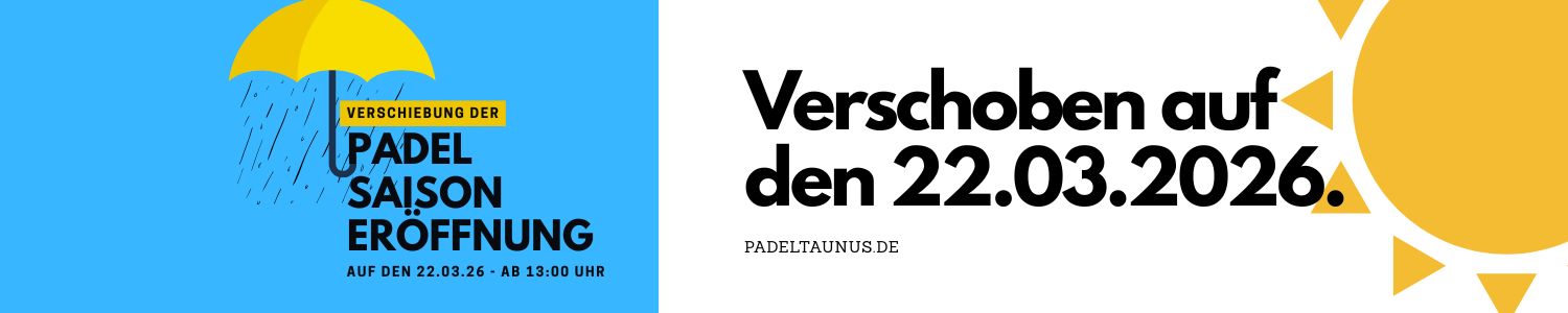 Liebe Padel-Freunde, aufgrund der schlechten Wettervorhersage für den kommenden Samstag haben wir uns schweren Herzens dazu entschieden, unsere Padel-Saisoneröffnung auf Sonntag, den 22.03.2026, zu...